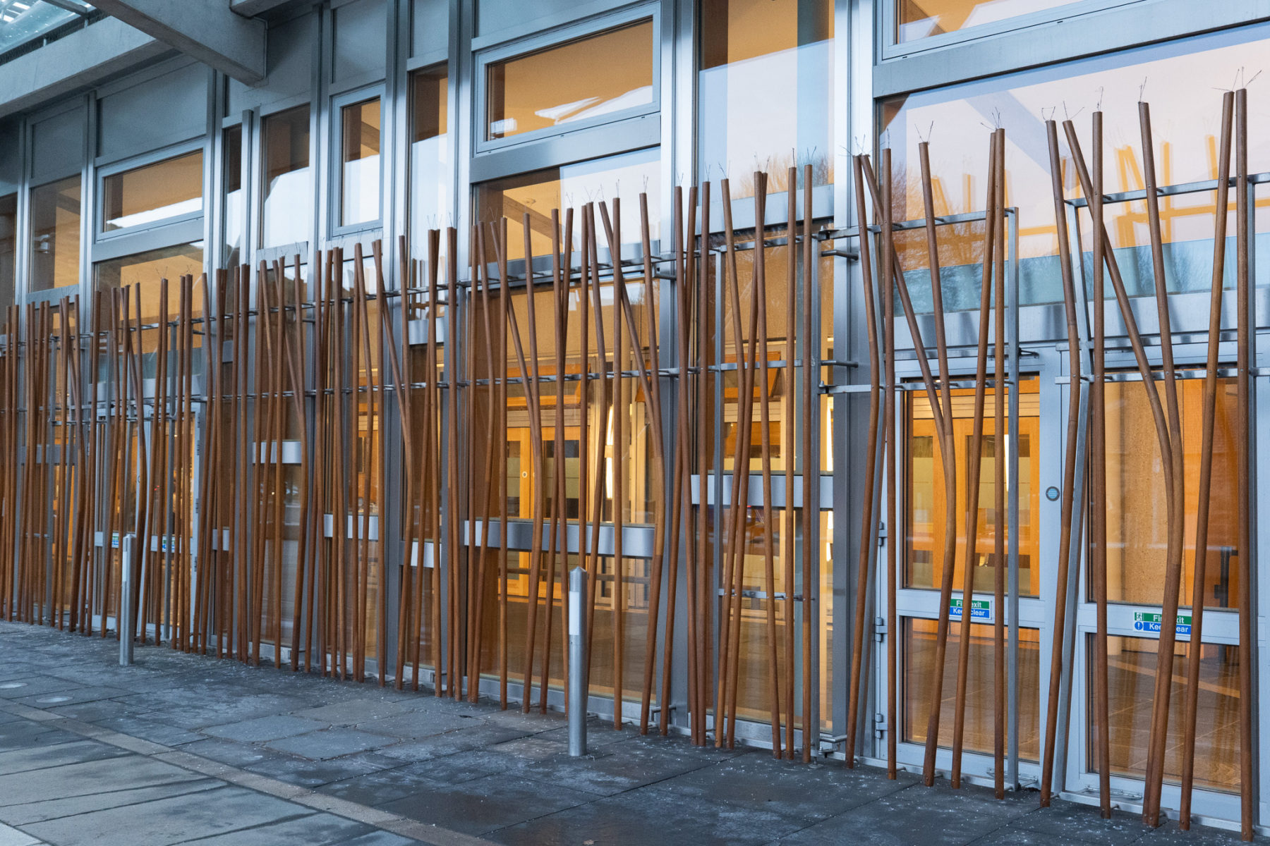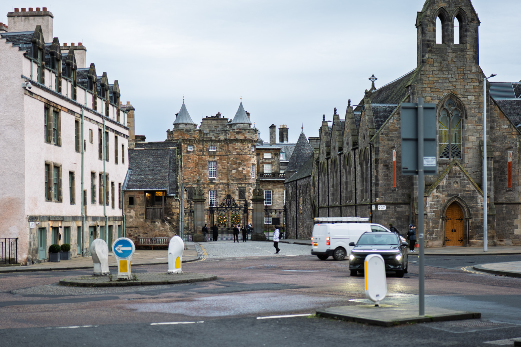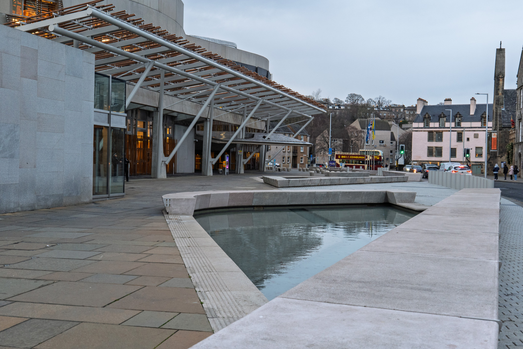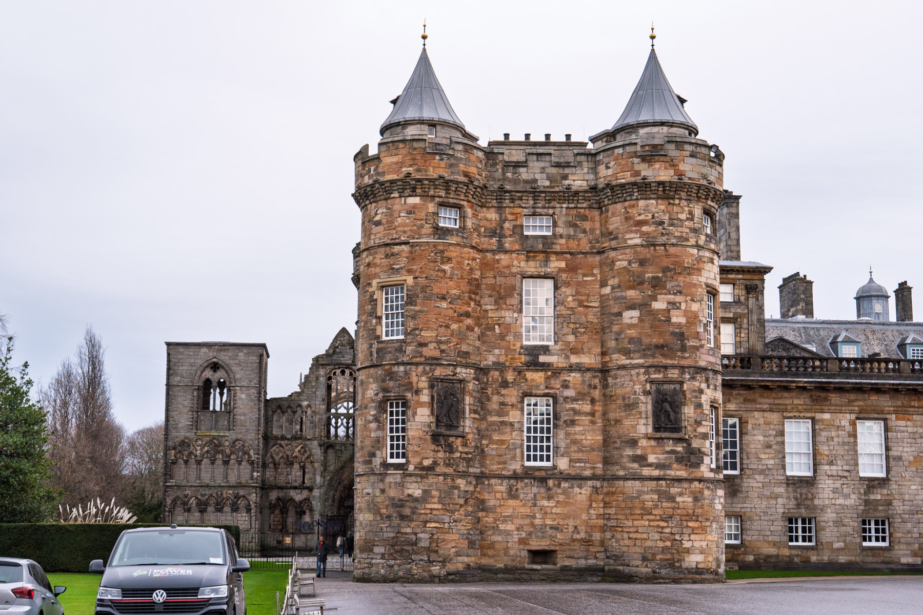 Holyrood Palace and the Scottish Parliament sit next to each other at the foot of the Royal Mile – one mile from Edinburgh Castle which sits at the top of the Royal Mile. The Palace was built in the 16th century beside Holyrood Abbey. The Parliament building was opened in 2004, although the Scottish Parliament had been meeting in the Church of Scotland Assembly Hall on the Mound since the Parliament was reconvened in 1999. No photographs are allowed inside the Palace and photography is restricted inside the parliament, but yo;u can find many images online from both buildings. The slide show on this page shows both buildings from the outside and some shots of the surrounding area.