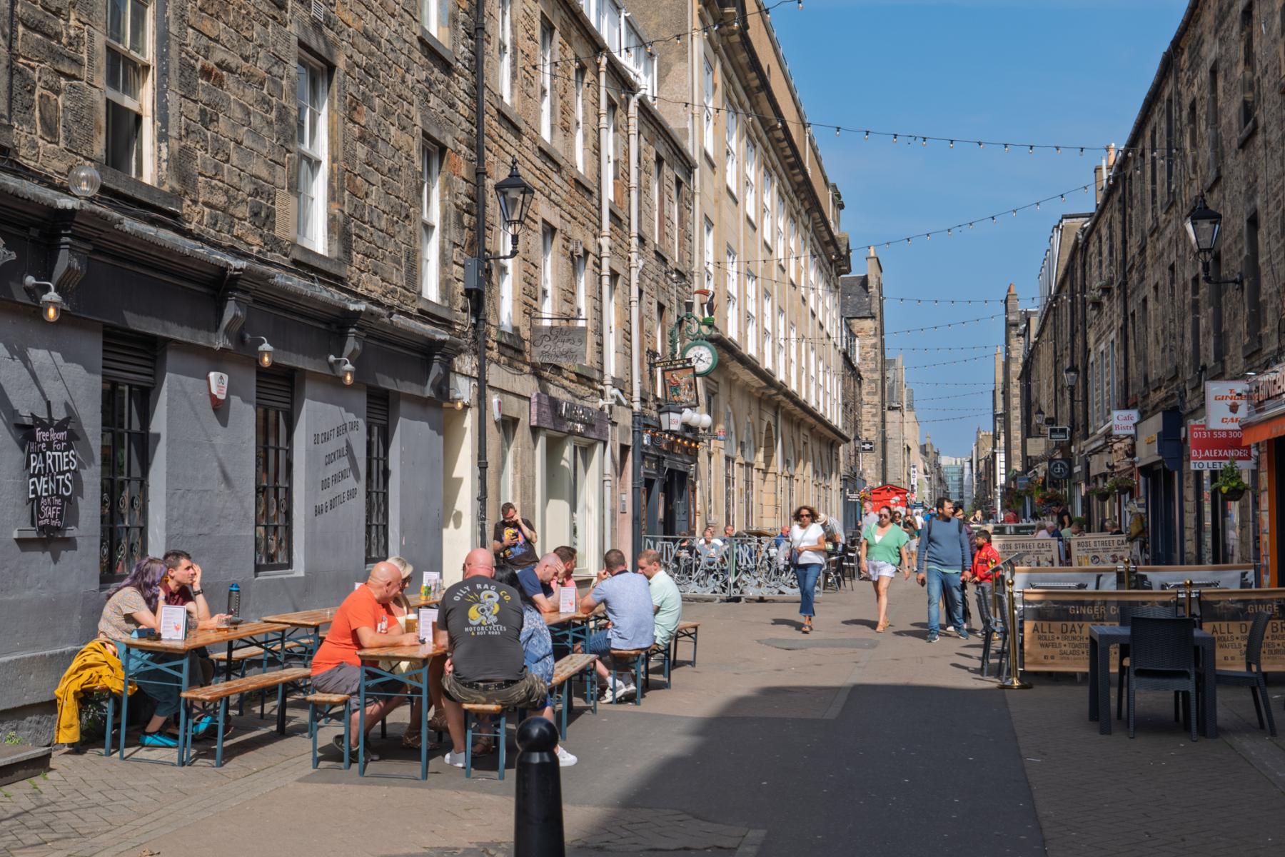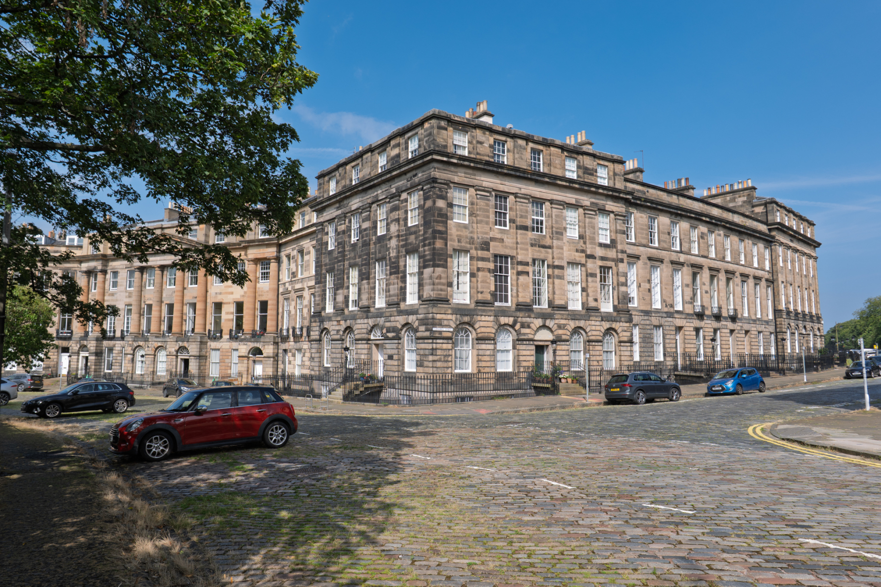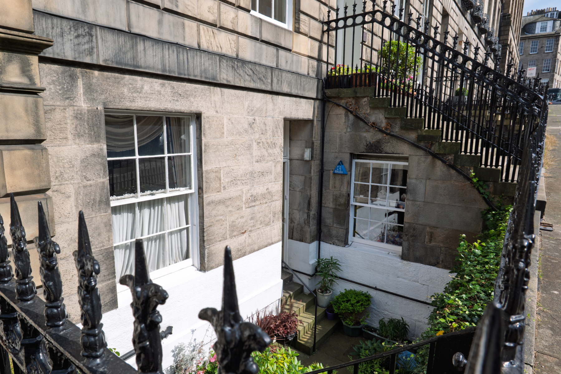 Edionburgh’s New Town was designed in the 18th Century. Grand Georgian terraces sit in wide streets. Narrow lanes run behind: originally mews cottages and stables – now sought after city centre houses. Many of the terraces have basements with flourishing gardens. The New Town lies to the north side of the city centre. (The Old Town which largely dates from 14th and 15th century lies on the south side of the centre). Original New Town houses are subject to strict planning regulations to keep the uniform character of the area, although there are also some iconic unique buildings such as the Portrait Gallery
