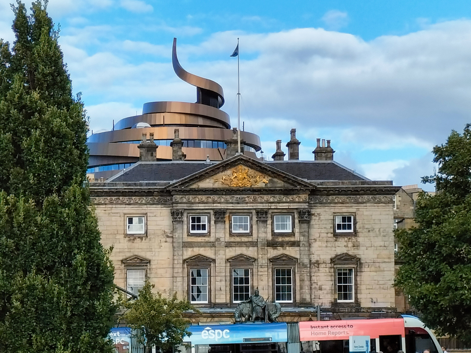 There are many different styles of architecture in Edinburgh. The New Town and the Old Town are the best known and I have pages devoted to them. But there are many other interesting styles – classical and modern. New buildings are often controversial. This slide show demonstrates some of the variety you can find in the city – including the following: The ‘colonies’ – back to back rows of houses with outside staircases built for artisans in the second half of the 19 Century, The ‘walnut whip’ hotel in the St James Quarter. The Scottish Parliament – whose escalating cost was seen as a scandal during construction but which is hardly ever mentioned now. The Stewarts Melville school building that was based on the runner up in the design competition for the Houses of Parliament in London. (NOTE – still collecting some of the images for this)